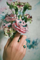 ANEL BOTÂNICA PALMEIRA IMPERIAL OURO AMARELO RESINA VERDE E TOPÁZIO SKY