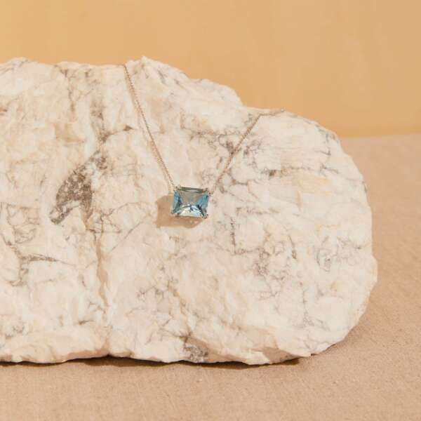 COLAR KANJU OURO BRANCO TOPÁZIO AZUL