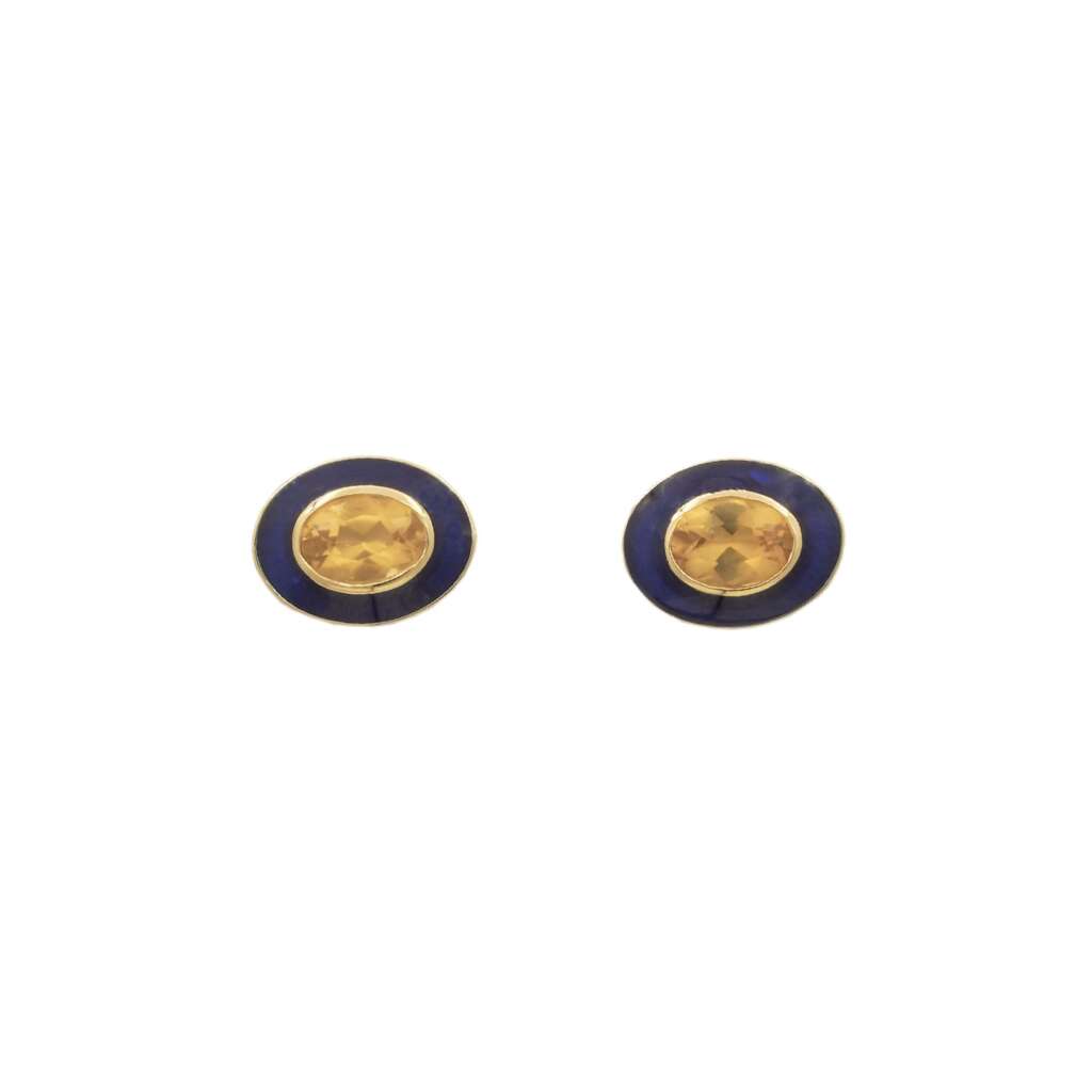 BRINCO BOTÂNICA OURO AMARELO CITRINO E RESINA AZUL