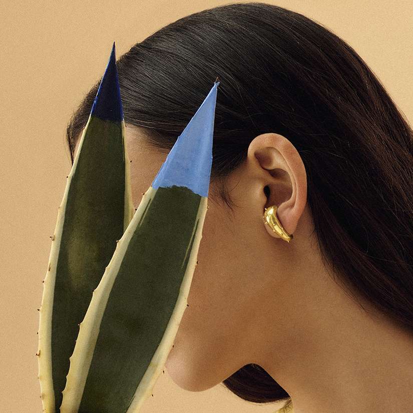 BRINCO EARHOOK AGAVE PRATA COM BANHO DE OURO AMARELO