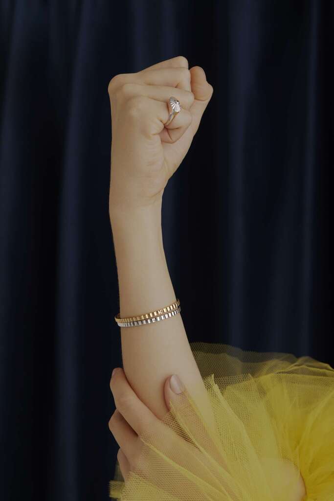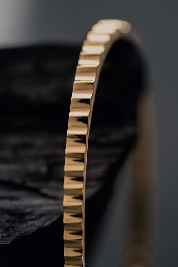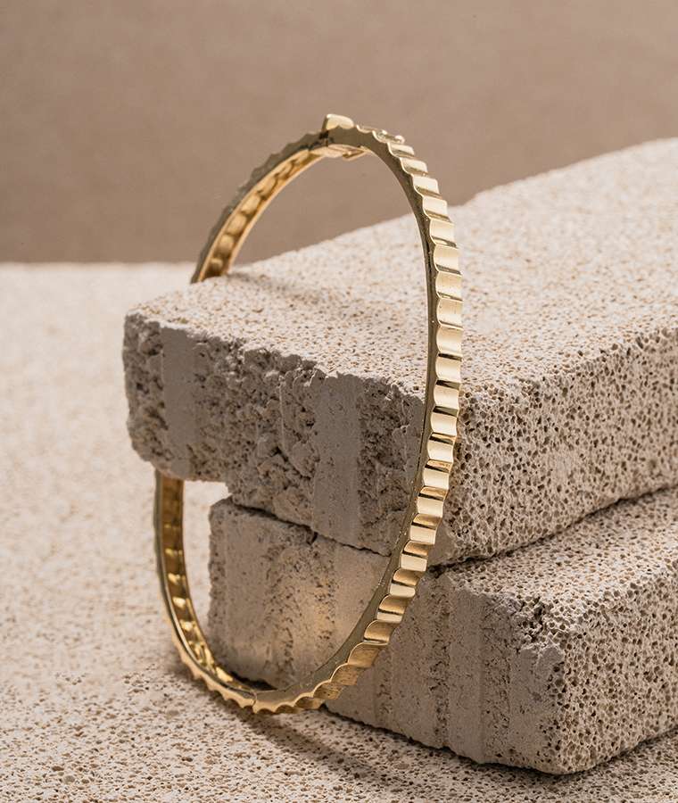A peça é feita de ouro 18k e possui garantia vitalícia. Não cobre, no entanto, danos pelo uso indevido da peça.
